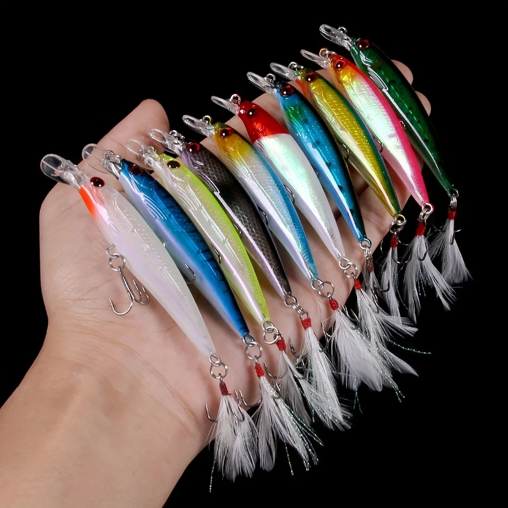 - Versatile Design: Each lure is expertly crafted to mimic the appearance and movement of minnows, enticing bass and other game fish to strike.