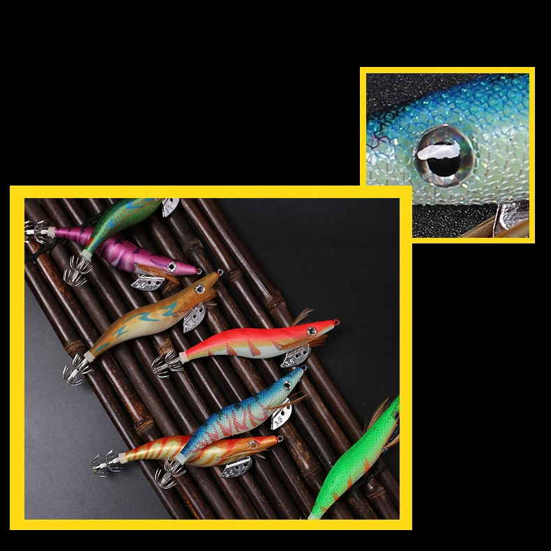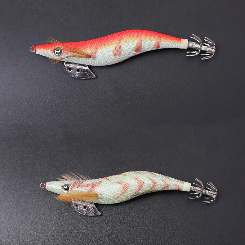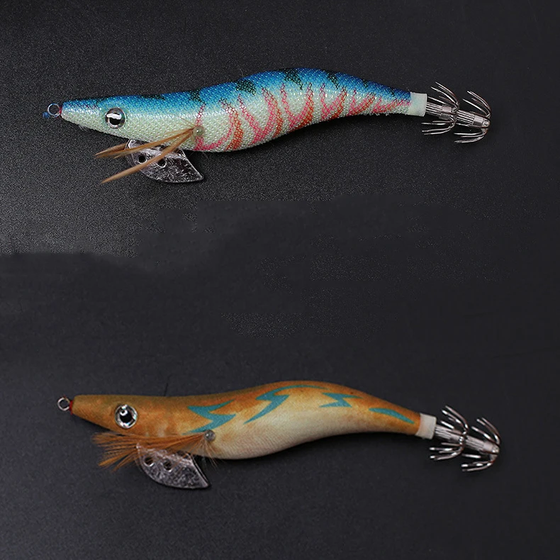 Featuring 3D Printing 2.5, 3.0, and 3.5 Hook Luminous Squid Jig Fishing Wood Shrimp Lure Key Features: